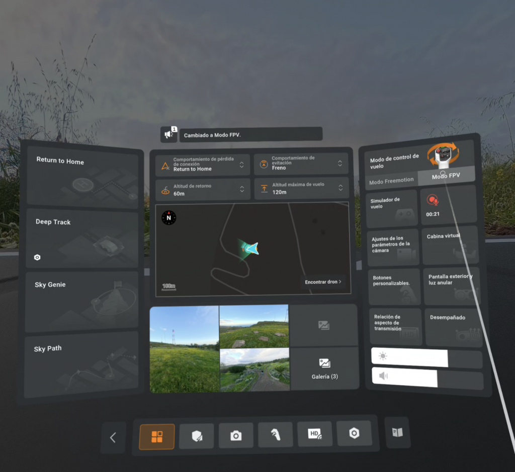 Esto cambia completamente la experiencia. No estás simplemente viendo el dron en una pantalla, estás explorando el entorno como si estuvieras dentro. En mi caso, la sensación se acerca bastante a la realidad virtual.