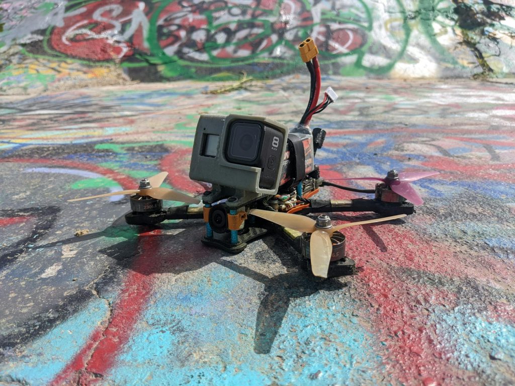 Si utilizas una cámara de acción independiente, como una GoPro, es muy recomendable igualar su inclinación con la cámara FPV. De esta forma, lo que ves en las gafas se corresponde mucho mejor con lo que estás grabando, facilitando la composición del plano, la precisión del vuelo y reduciendo errores durante la grabación.