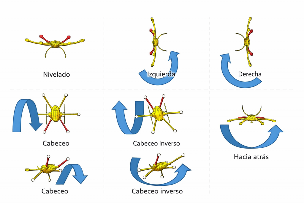 • Cabeceo: Eje lateral alrededor del cual gira el drone para avanzar o retroceder