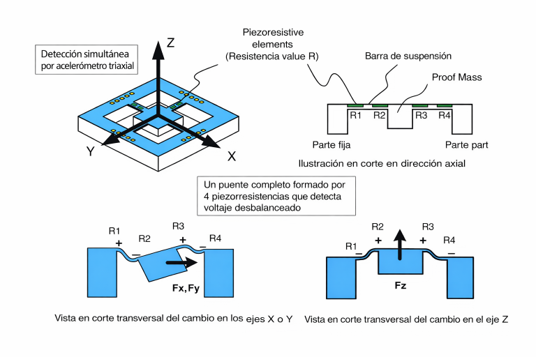 Acelerómetro : cambio de velocidad en todas las direcciones