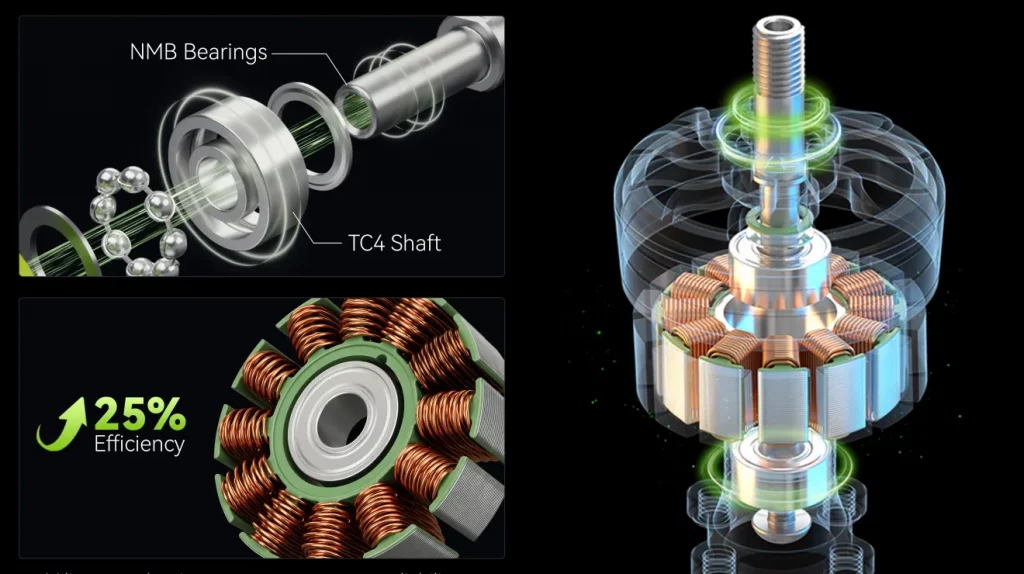 Durante las pruebas, los motores MEPS SZ2306 demostraron una respuesta de aceleración rápida y consistente, facilitando maniobras precisas en vuelo freestyle. La versión V2 de estos motores ofrece un aumento del 40% en el tiempo de vuelo y una mejora del 25% en la eficiencia de vuelo y control, en comparación con la primera generación.