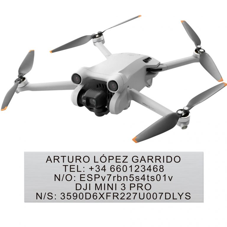 Estas placas identificativas personales son de gran utilidad en casos de accidentes e incluso en el momento que se extravíe el dron, ya que permite diferenciar tu UAV entre otros modelos del mismo lote.