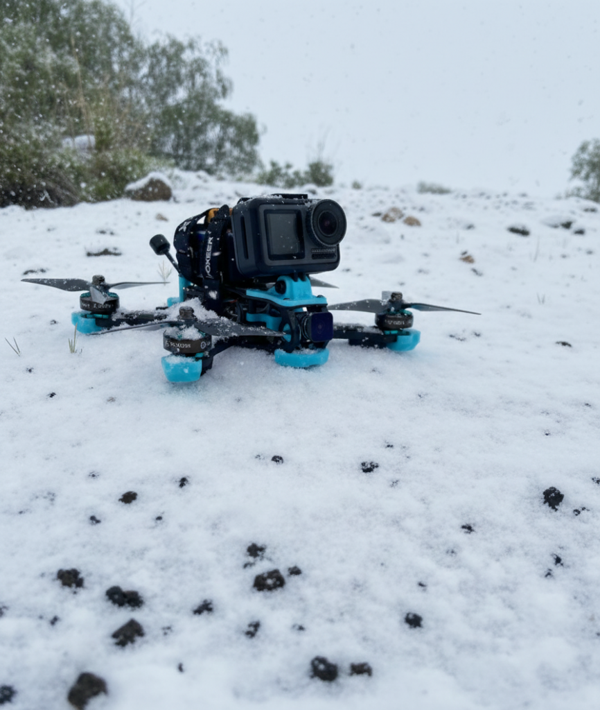 Las bajas temperaturas hacen que muchos materiales utilizados en drones FPV se vuelvan más rígidos y frágiles. Componentes que en verano soportan pequeños golpes sin problemas, en invierno pueden romperse con mucha más facilidad, incluso en impactos leves.